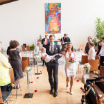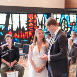 Opgetogen reed ik dus de grens over naar Duitsland waar de dag plaats zou gaan vinden. Emily bleek die dag niet het enige kindje te zijn, veel familie en vrienden van Elke en Armin hadden hun kinderen meegebracht. ‘Dat belooft wat voor de kerkdienst’ dacht ik nog. En dat was niet onterecht: op een ontzettend leuke manier waren de kinderen onderdeel van de kerkdienst en al spelend kropen er een aantal zelfs onder het altaar door. Ik kwam dus ogen tekort :).