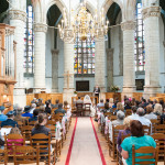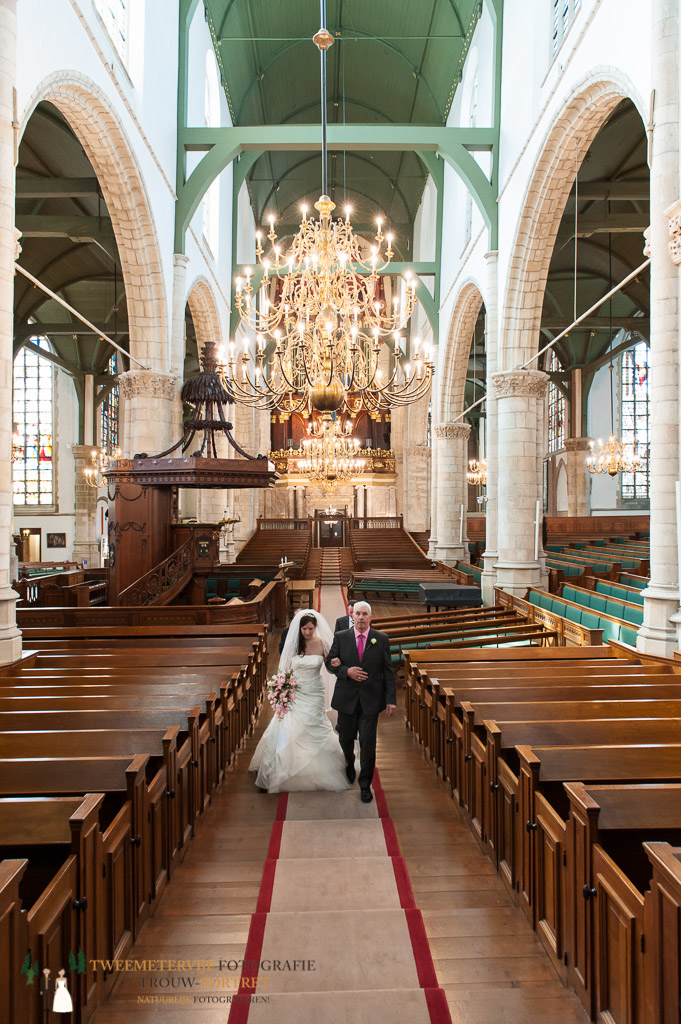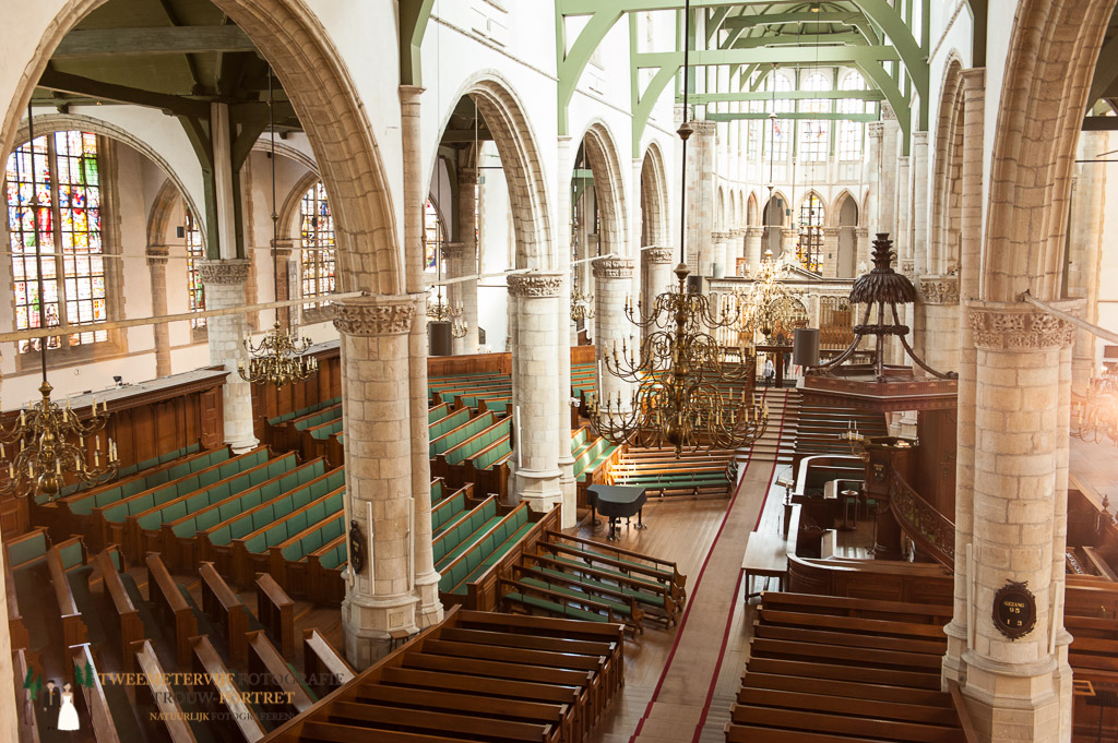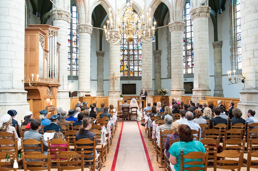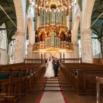 Rondom de kerk liggen namelijk nog een aantal fotogenieke plekjes en deze wilden we even langsgaan. Na deze foto’s gemaakt te hebben was er even tijd om wat te drinken en een rondje door de indrukwekkende kerk te lopen. Het is de kerk met het langste schip van Nederland en dus zou het een heel eindje lopen zijn vanaf de ingang van de kerk naar het koor, waar de ceremonie gehouden ging worden. Daarbij loop je onder een schitterend orgel door, door een soort amfitheater opgezet gedeelte met de preekstoel en uiteindelijk in het knusse koor. Een indrukwekkende locatie!