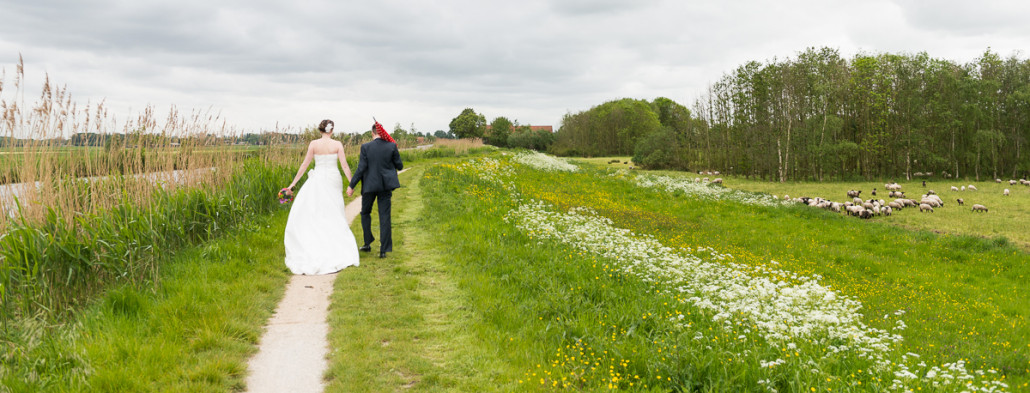 En ze houden van buiten zijn. Daarom gingen we de fotoreportage in hun favoriete natuurgebied Ackerdijkse Plassen maken en zou daarna ook de rest van de dag buiten plaatsvinden. Totdat het weer besloot daar een stokje voor te steken. De fotoreportage konden we nog net maken, bij de laatste foto’s begon het te regenen. Daarna is het niet meer gestopt. Maar dat maakte voor dit bruidspaar niets uit, zij genoten er zeker niet minder om.