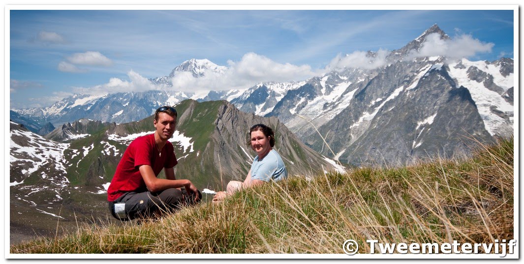 Na deze succesvolle dagen besloten om te reizen naar het punt waar onze origineel gekozen tocht zou eindigen, namelijk Courmayeur, om vanuit daar een paar dagen op de route ‘terug’ te lopen. Uit de beschrijving bleek dat dit een paar mooie dagen waren. Omdat we niet met een zware rugzak wilden lopen besloten om voor drie nachten hutten te reserveren. Nadat gedaan te hebben in de buurt van Courmayeur (wat wij overigens geen aanrader vinden, beetje te elitair dorp) op een camping gestaan.