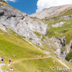 Boven aangekomen namen we de tijd om te genieten van het fenomenaal mooie uitzicht! En om Corné z’n luier te verschonen en een fruithapje te geven. Toch iets ongewoons voor een baby van 8 maanden om dat te doen op bijna 2700 meter hoogte… Daarna gingen we op pad om in totaal ruim 1100 meter af te dalen naar Bargis, het beginpunt van onze eerdere wandeling. Gedurende de wandeling veranderde de omgeving van een hoog alpiene terrein naar het groene en lieflijkere van Bargis. Wat een tocht!