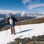 De volgende dag was het zoals we gehoopt hadden: helder en zonnig weer. Wat we echter niet verwacht hadden was dat op de omringende bergtoppen sneeuw lag. En dat begin september al! We wilden nogmaals met de kabelbaan en gondel naar Cassonsgrat op 2700 meter gaan om een wandeling te maken die we de vorige keer op de kaart hadden gezien. Snel verzamelden we dus onze spullen en reden naar Flims om daar in de skilift te stappen.