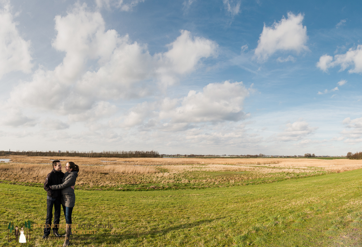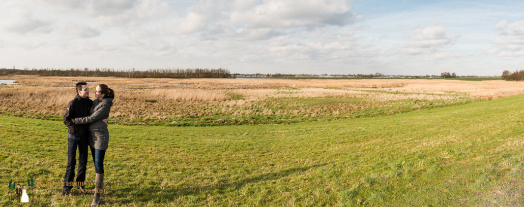 Hun bruiloft gaat grotendeels plaatsvinden in een natuurgebied vlakbij hun huis in Pijnacker, namelijk de Ackerdijkse Plassen. Op een prachtige locatie van Natuurmonumenten zullen zij binnenkort hun ja-woord geven. Niet zo vreemd dat we in voor de preweddingshoot daarom naar dit gebied toe zijn gegaan. Op een typische Hollandse dag qua weer met onder andere zonneschijn, wind, wolken en blauwe luchten was het heel gezellig en ontspannen om met ze op pad te zijn. En dat leverde wat leuke foto’s op.
