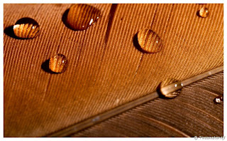 De foto’s zijn van heel dichtbij genomen (camera op statief, met voorontspanning) en was een goede manier om de scherpte van de macrolens nog eens te testen. Het detail dat op sommige van de onderstaande foto’s te zien is van een ‘simpel’ iets als een veer vind ik zelf echt indrukwekkend. Door de vergrotende werking van de waterdruppels zijn zelfs de kleinste details waar te nemen en kun je goed zien hoe het verenpak een vogel beschermt tegen weer en wind. Ben erg benieuwd wat jullie van onderstaande resultaten vinden: